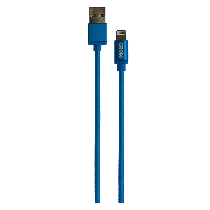 Charge your Apple device quickly and reliably with the Grixx Lightning cable. With sturdy nylon braided cover and aluminum connectors, this cable is durable and resistant to wear and tear. Available in 1-meter and 3-meter lengths, and in a variety of colors including blue, red and space gray. MFI certified for hassle-free operation with your Apple devices. Order now!